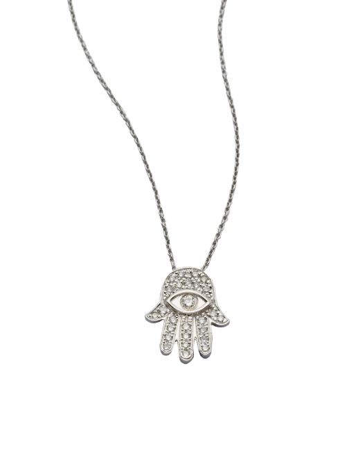 From the Tiny Treasures Collection. A spiritual design that sparkles with diamonds in 18k gold on a chain link necklace. Diamonds, 0.18 tcw 18k white gold Length, about 16" with 2" extender Pendant size, about 0.5" Lobster clasp Made in Italy ABOUT THE BRAND Jewelry designer Roberto Coin founded his eponymous line in 1996, with a strong emphasis on elegance and creative experimentation. Each piece is the result of a long creative process, taking inspiration from cultural influences and nature. Fine Jewelry - Roberto Coin Asset > Saks Fifth Avenue > Barneys. Roberto Coin. Color: White Gold.