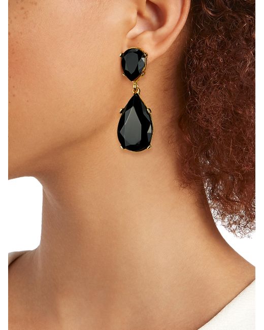 Faceted black crystals are bold and luxurious within a goldtone setting. Glass crystals 22k gold electroplated Clip on Made in USA SIZE Drop, about 2". Fashion Jewelry - Trend Jewelry > Saks Fifth Avenue > Barneys. Kenneth Jay Lane. Color: Gold.