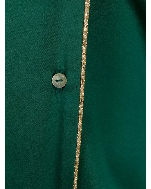 emerald green silk piped-trim detailing elasticated waistband front button fastening satin finish