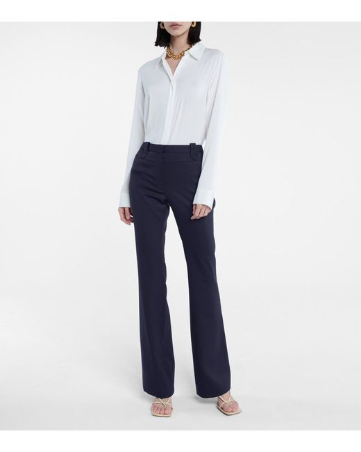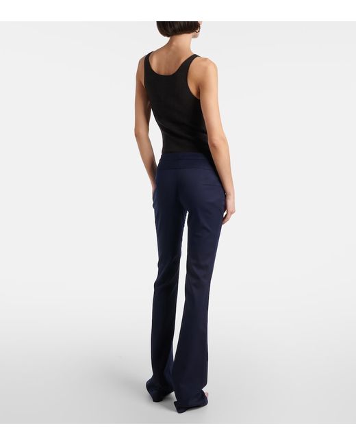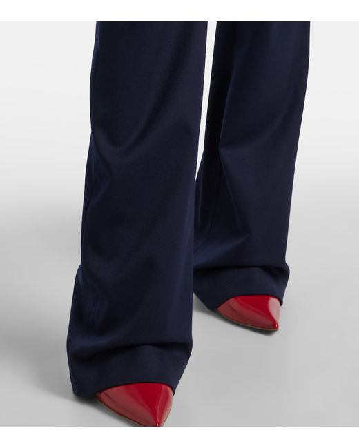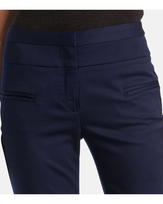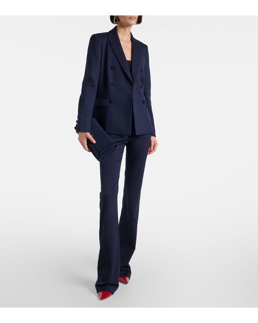 Made in Italy. Lining: 64% viscose, 36% polyester, partially lined. Material: 2% elastane, 98% wool. Designer color name: Berry Blue. Closure: zipper fly, button and hook fastenings. Belt loops. Pockets: slit pockets. Care instructions: dry clean.