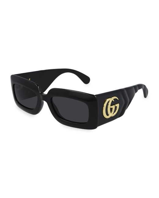 Elegant rectangular shape distinguished by matelassé decoration on temples that conveys feeling of softness, typical of Gucci leather goods 53mm lens width; 21 bridge width; 145 temple length 100% UV protection Solid lens Injection Imported ABOUT THE BRAND First launched in 1921, the Italian luxury fashion house quickly became known for its fine leather craftsmanship and accessories. Under the helm of Creative Director Alessandro Michele since 2015, the brand's contemporary designs include shoes, clothing and accessories-often boasting the distinctive Horsebit motif. Soft Accessories - Sunglasses > Gucci > Saks Fifth Avenue > Barneys. Gucci. Color: Black.