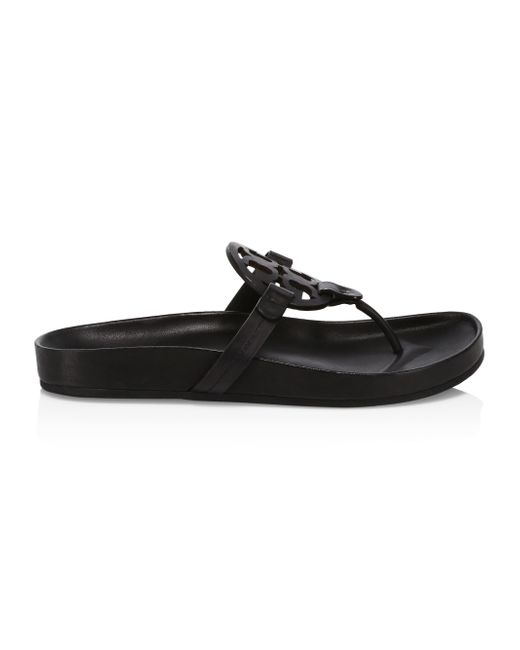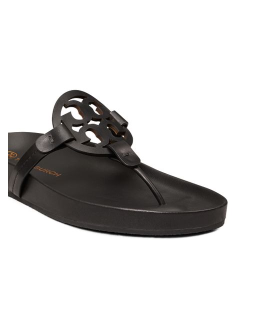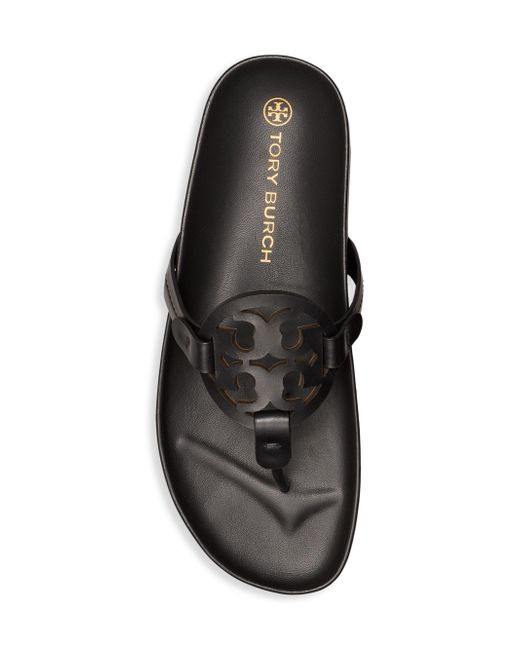 A sporty take on Tory's signature Miller thongs are designed with an ultra-comfortable molded footbed. Leather upper Thong toe Slip-on style Molded footbed Lining: Leather Rubber sole Imported ABOUT THE BRAND Since debuting her brand in 2004, New York-based designer Tory Burch has made an impact on the fashion world with her handbags and shoes, and playful-yet-polished clothing. Today, Burch remains inspired by color and travel, with her vibrant collections bursting with prints, and her instantly recognizable double-T logo drawing from Moroccan architecture. Women's Shoes - Tory Burch Womens Shoes > Tory Burch > Saks Fifth Avenue > Barneys. Tory Burch. Color: Perfect Black. Size: 5.