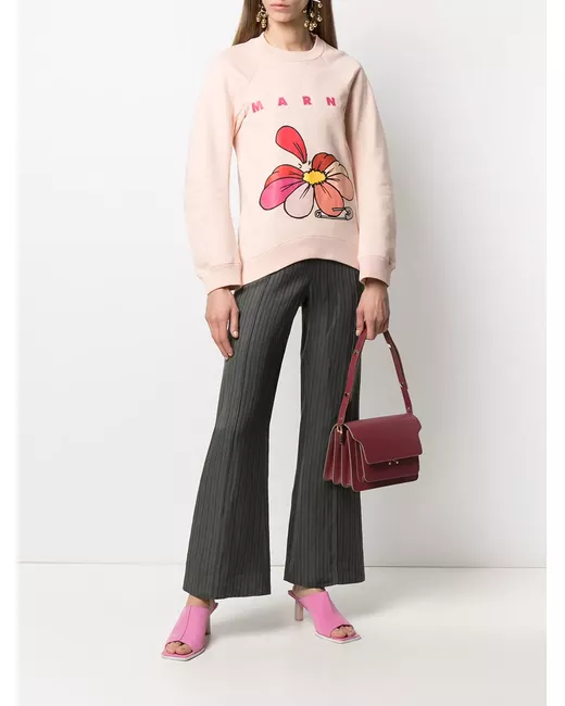 Red calf leather medium Trunk shoulder bag from MARNI featuring front flap closure, gold-tone clasp fastening, adjustable shoulder strap, front patch pocket, internal zip-fastening pockets and internal logo stamp.