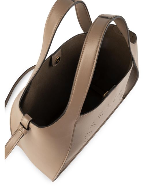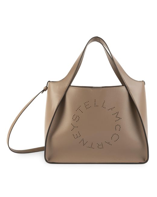 Signature perforated logo adorns this leather-look crossbody bag. Open top with snap closure Goldtone hardware 1 interior compartment Interior snap flap pouch Polyurethane/polyester Made in Italy SIZE Adjustable crossbody strap, 50" drop Dual top handle, 13" drop 1 lb. 15.5"W x 12.5"H x 5"D ABOUT THE BRAND From interning at Christian Lacroix at 16 to her role as Chloé's Creative Director, Stella McCartney made a name for herself in the fashion industry well before the launch of her own brand in 2001. Since its inception, McCartney has remained dedicated to sustainability and taken an ethically minded design approach-never using leather, feathers, skin or fur in any of her pieces. Today, the brand is renowned for its bold, feminine ready-to-wear and accessories, as well as its foray into menswear, kids' clothing and fragrances. Handbags - Stella Mccartney > Saks Fifth Avenue > Barneys. Stella McCartney. Color: Moss.