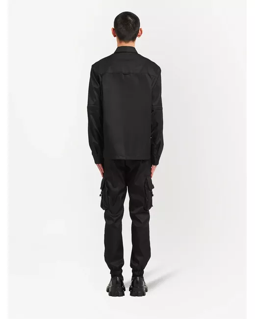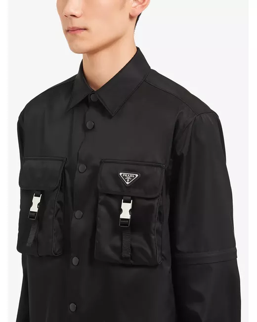 Black classic collar front press-stud fastening enamel triangle logo two chest flap pockets buckle fastening long sleeves buttoned cuffs straight hem