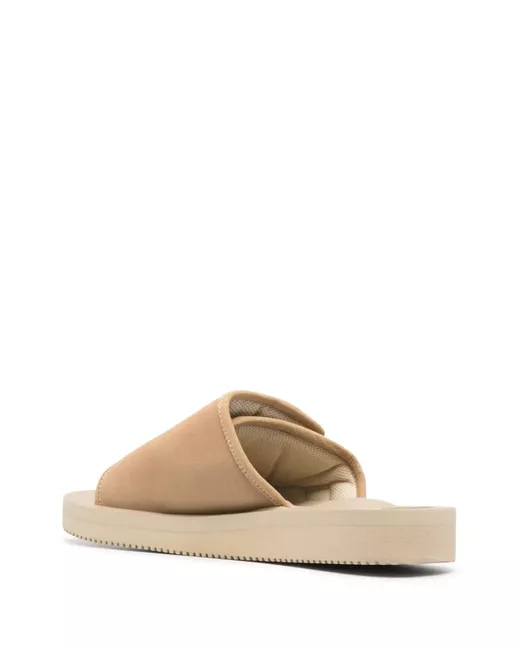 camel brown leather/fabric/rubber logo patch to the front front touch-strap fastening open toe flat sole