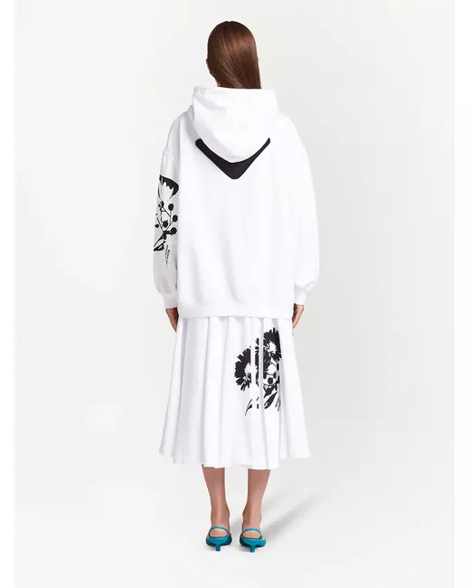 white cotton floral print graphic print drawstring hood long sleeves ribbed cuffs ribbed hem