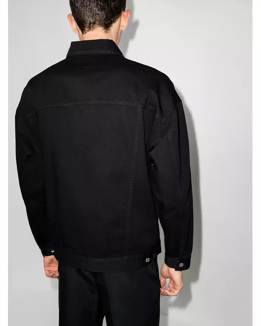 Black cotton logo-print denim jacket from GIVENCHY featuring logo print to the front, classic collar, front button fastening, long sleeves, two chest flap pockets, two side slit pockets, buttoned cuffs and straight hem.