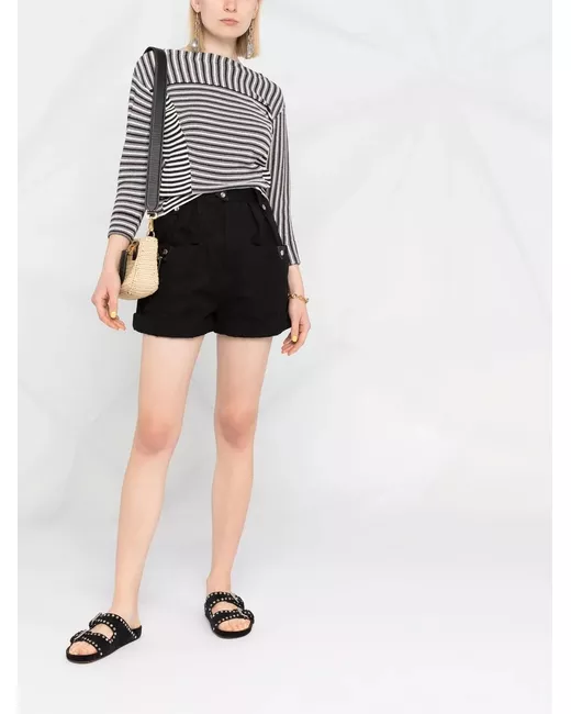 navy blue/white cotton stripe pattern panelled design boat neck three-quarter length sleeves