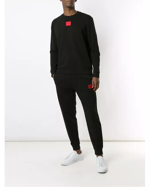 black cotton logo patch to the front crew neck long sleeves straight hem