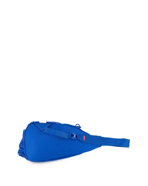 blue top zip fastening logo print to the front adjustable shoulder strap mesh detailing