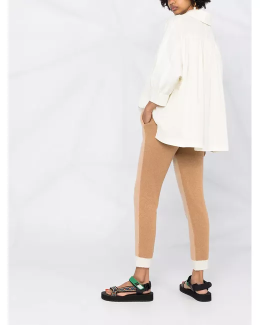 neutral cashmere knitted construction ribbed detailing elasticated waistband intarsia-knit logo contrasting cuffs