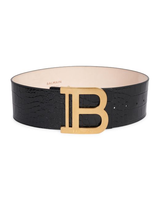This sleek leather belt features chunky logo hardware. Thread through bar closure Goldtone hardware Leather Made in France SIZE 2.76"W x 29.13"-33"L. Soft Accessories - Belts > Saks Fifth Avenue > Barneys. Balmain. Color: Noir. Size: Medium.