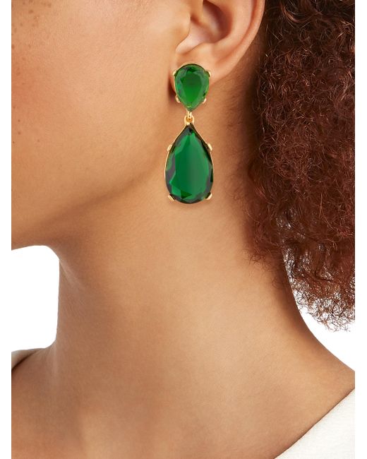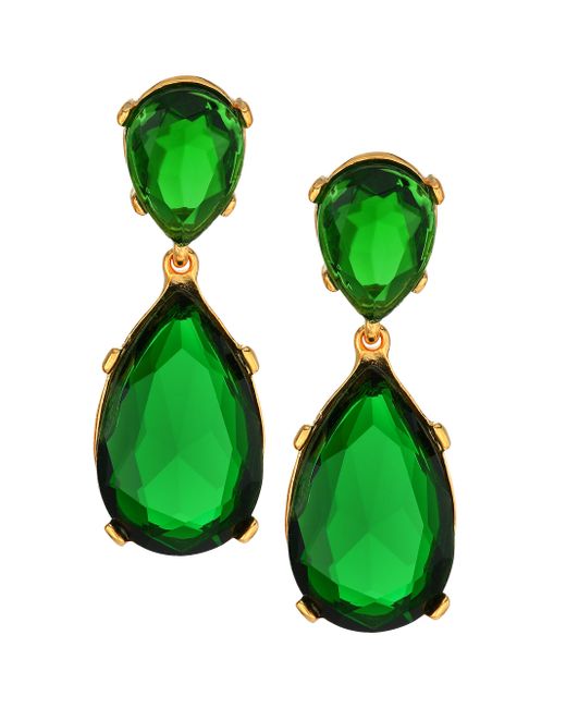 Faceted emerald-tone crystals are bold and breathtaking within a goldtone setting. Glass crystals 22K gold electroplating Post back Made in USA SIZE Drop, about 2". Fashion Jewelry - Trend Jewelry > Saks Fifth Avenue > Barneys. Kenneth Jay Lane. Color: Emerald.