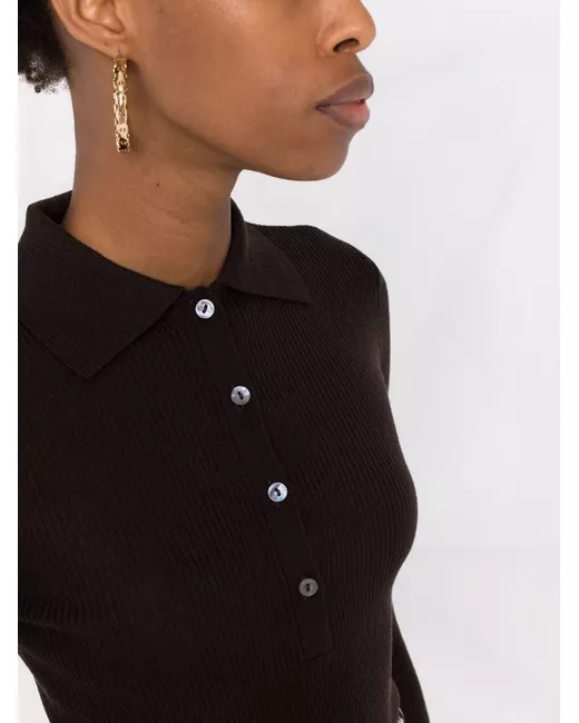 brown wool ribbed knit classic collar polo collar long sleeves straight hem