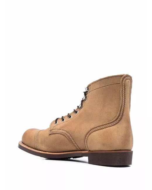 brown leather round toe front lace-up fastening low heel VibramĀ® sole