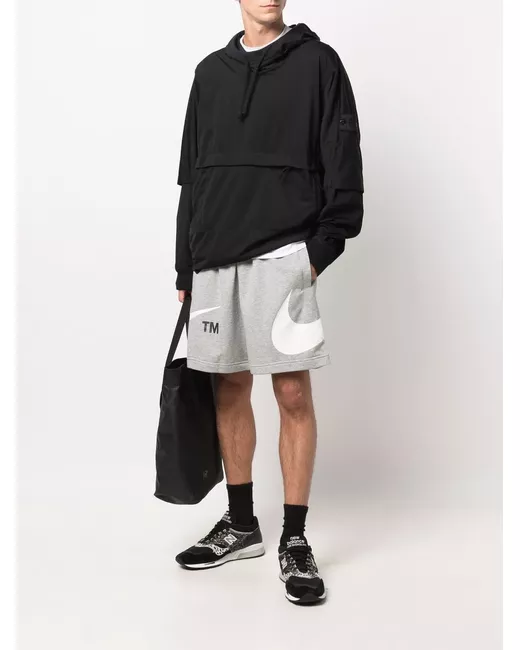 Grey cotton logo-print shorts from NIKE featuring signature Swoosh logo detail, elasticated waistband, two side inset pockets and rear welt pocket.