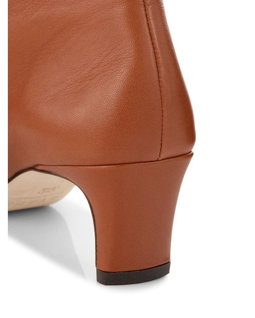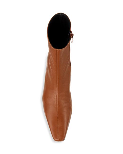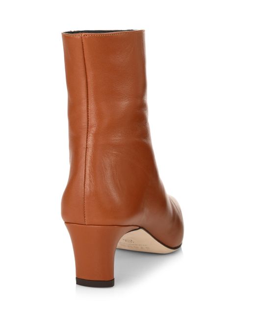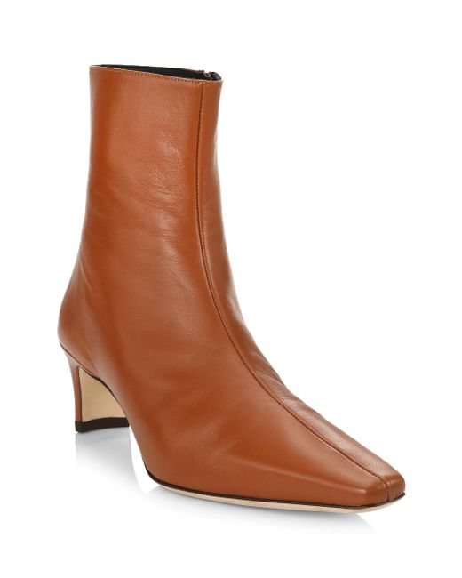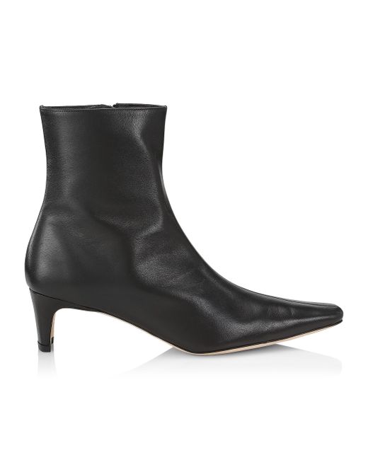 Nappa leather ankle boots with modern pointed rectangular toe feature blade heel and side zipper for a streamlined design. Goat leather upper Pointed rectangular toe Side zip closure Leather lining Leather/rubber sole Made in Portugal SIZE Blade heel, 1.7" (45mm). Women's Shoes - Workshop Shoes > Staud > Saks Fifth Avenue > Barneys. STAUD. Color: Black. Size: 6.