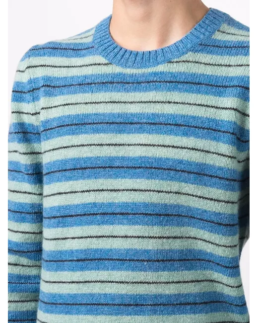 Blue wool horizontal-knit jumper from A.P.C. featuring horizontal stripe pattern, knitted construction, long sleeves and round neck.