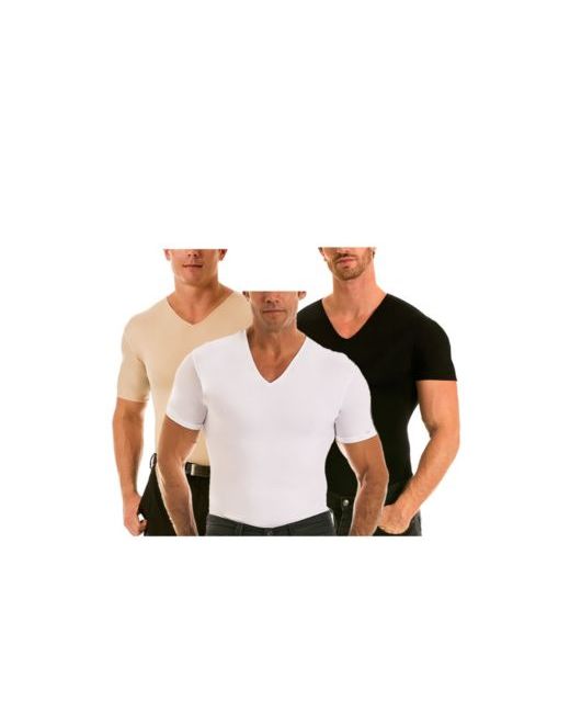 Brown Insta Slim Mens 3 Pack Compression Short Sleeve V-Neck T-Shirts