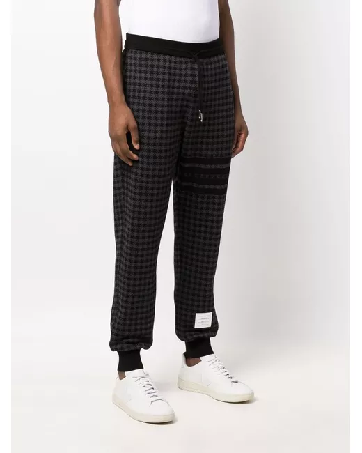 black/grey cotton houndstooth pattern signature grosgrain loop tab signature 4-Bar stripe logo patch to the front elasticated drawstring waistband rear welt pocket elasticated ankles