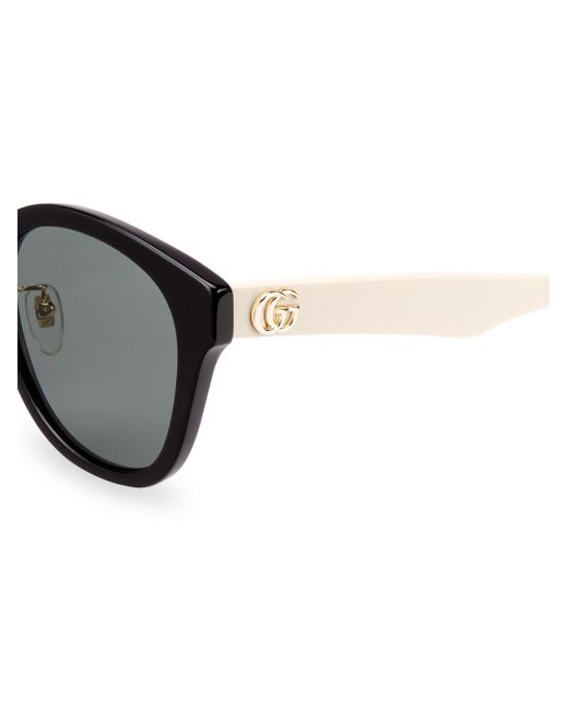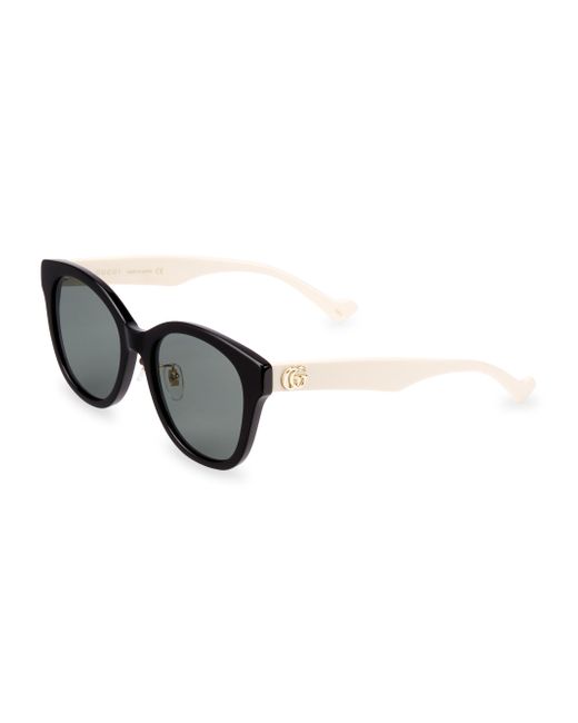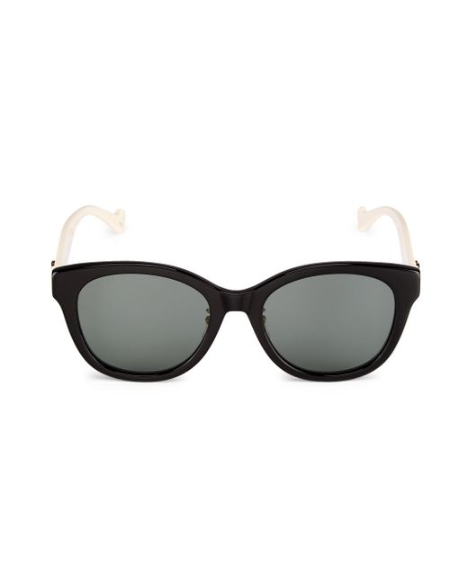 56mm lens width; 20mm bridge width; 145mm temple length 100% UV protection Solid lenses Case and cleaning cloth included Gucci lettering logo Acetate Made in Japan. Soft Accessories - Sunglasses > Gucci > Saks Fifth Avenue > Barneys. Gucci. Color: Shiny Black.