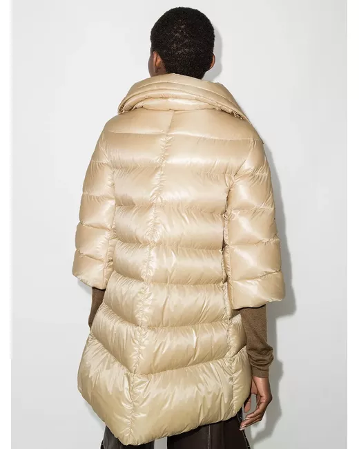 neutrals feather down down-feather filling padded design high neck front two-way zip fastening three-quarter length sleeves