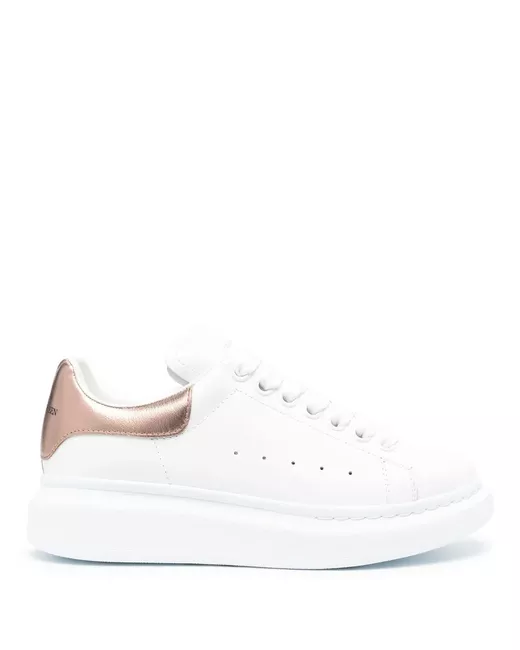Alexander McQueen often wore sneakers when working on new designs in the studio. Therefore, it is no coincidence that the brand’s sporty footwear has become a cult sensation. Made from leather, these white sneakers have a round toe, a lace-up front fastening, a contrasting metallic heel panel and the brand's signature elongated sole. ALEXANDER MCQUEEN won't provide dust bags to sneakers anymore.
