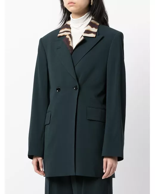midnight green wool blend classic lapels double-breasted button fastening long sleeves two front flap pockets