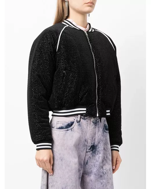 black logo embellishment silver-tone stud detailing baseball collar front zip fastening long sleeves straight hem full lining