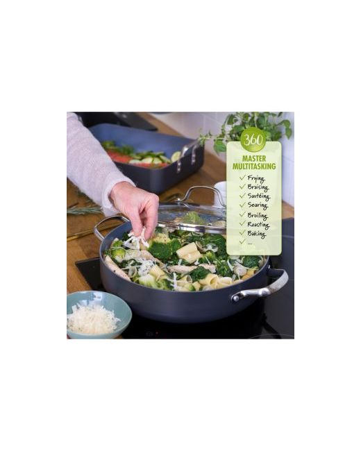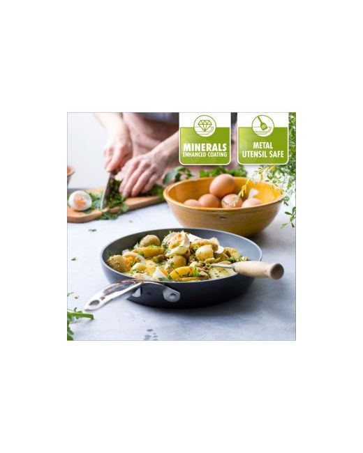 Your go-to pan, your kitchen hero-this 12" frypan is a must-have for any kitchen. Safe for all stovetops thanks to its Magneto base, this pan is crafted from durable hard anodized aluminum and finished with GreenPan's healthy ceramic nonstick coating.