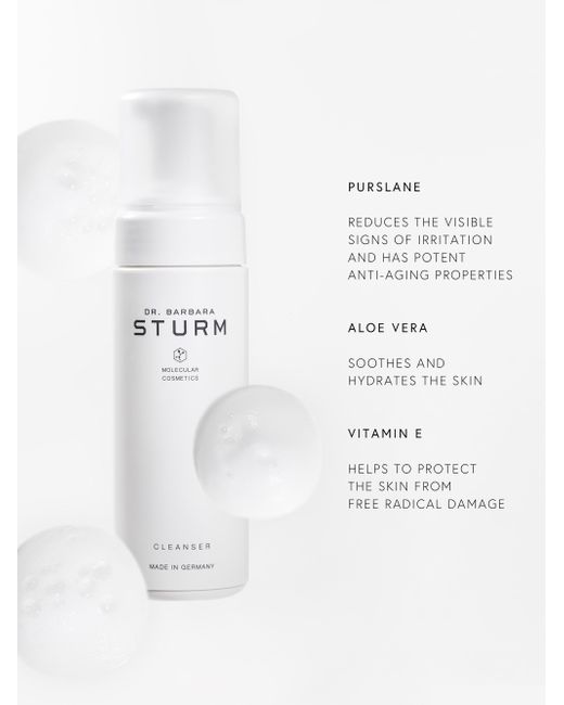 WHAT IT IS Thorough cleansing is an essential step of an effective skincare routine. Without it, impurities lodge on and in the skin, and active skincare ingredients cannot be optimally absorbed or used by the skin. This gentle foaming CLEANSER removes complexion makeup and other impurities and prepares your skin for moisturizer or serum, without disturbing the delicate pH-balance or skin barrier function. Containing natural functional ingredients, Purslane calms, soothes and moisturizes, while Aloe Vera helps to repair and rejuvenate the skin. 5 oz. Made in Germany. "Gentle cleansing daily to remove dirt, pollution and other irritation-triggering impurities is important to prepare the skin for skincare absorption."- DR. BARBARA STURM WHAT IT DOES Removes makeup and other impurities Prepares skin for moisturizer or serum without disturbing the delicate pH balance or skin barrier function Purslane calms soothes and moisturizes Aloe Vera repairs and rejuvenates HOW TO USE IT Shake before use. Pump a little foam into your hand and smooth over your face using circular movements. Then rinse off thoroughly with lukewarm water. ACTIVE INGREDIENTS Purslane Extract, Urea, Aloe Vera, Panthenol, Mild Tensides, Vitamin E, Glycerine INGREDIENTS Water, Aloe Barbadensis Leaf Juice, Panthenol, Urea, Lactobacillus/ Portulaca Ferment Extract, Citric Acid, Benzyl, Alcohol, Phenoxyethanol, Potassium Sorbate, Salicylic Acid, Leuconostoc/Radish Root Ferment Filtrate, Tocopherol, Pantolactone, Sodium Benzoate. Cosmetics - Dr Barbara Sturm > Dr. Barbara Sturm > Saks Fifth Avenue > Barneys. Dr. Barbara Sturm.