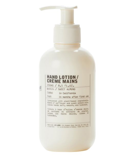 WHAT IT IS A non-greasy hand lotion that complements our hand soap. 8.5 oz. Made in USA. WHAT IT DOES This plant-based formula is made with sweet almond (to moisturize), safflower oil (to smooth), goldenrod (to protect), and is also paraben-free, phthalate-free and artificial colorant-free. Basil is paired with verbena, a citrusy and vegetal alternative to most aromatic notes which increases each facet of basil. It comes in a bottle with an easy-to-use pump. As always, our creations are vegan and cruelty-free. ABOUT THE BRAND Le Labo's instantly recognizable labels first appeared on the New York beauty scene in 2006. Each soulful fragrance is freshly blended at the time of purchase, and the full array of products extends to nourishing, plant-based and genderless body, hair and skincare. Names like Another 13 and Bergamote 22 refer to the most prominent note and the total number of ingredients. Fragrances - Le Labo > Le Labo > Saks Fifth Avenue > Barneys. Le Labo.