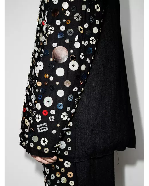 black cotton/wool blend decorative button detailing round neck front zip fastening long sleeves straight hem