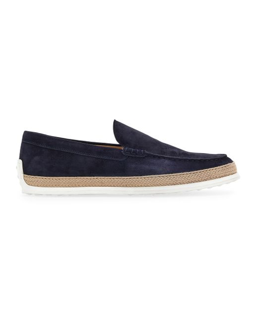 With a minimal and clean design, these suede espadrilles showcase braided jute. Suede upper Round toe Slip-on style Leather lining Removable insole Rubber sole Made in Italy. Men's Shoes - Tods Mens Footwear > Tod's > Saks Fifth Avenue > Barneys. Tod's. Color: Blue. Size: 6.5.