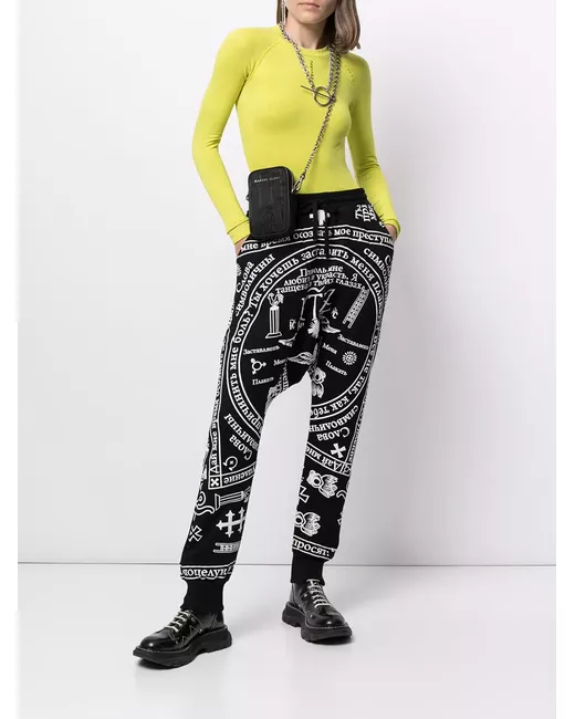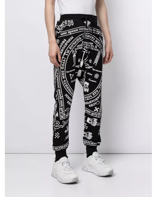 black/white cotton two side inset pockets drop crotch elasticated waistband straight leg elasticated cuffs