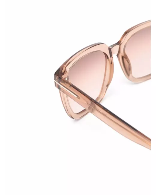 pale beige tinted lenses straight arms curved tips These glasses come with a protective case.