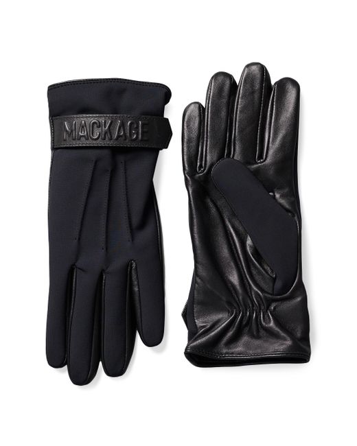 Mixed media in design, these sleek gloves are detailed with a snap wrist belt. Snap closure Shell: 75% polymid/nylon/25% elastane Combo: 100% lamb leather Lining: 70% virgin wool/30% cashmere Professional clean by leather specialist Imported. Men Accessories - Fashion Accessories > Mackage > Saks Fifth Avenue > Barneys. Mackage. Color: Black. Size: Medium.