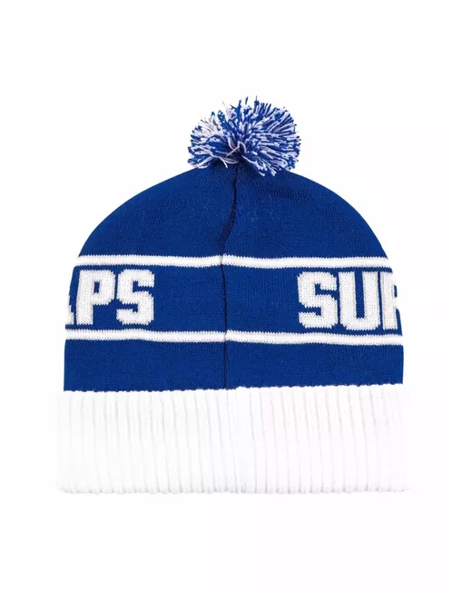 blue/white cotton logo patch to the front intarsia-knit logo pompom detail turn-up hem