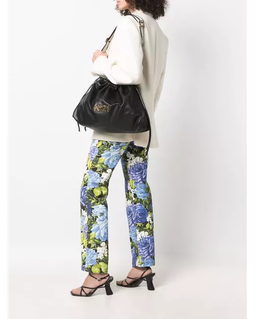 Black leather drawstring clutch bag from Nº21 featuring drawstring fastening, logo-print strap, main compartment and internal zip pocket.