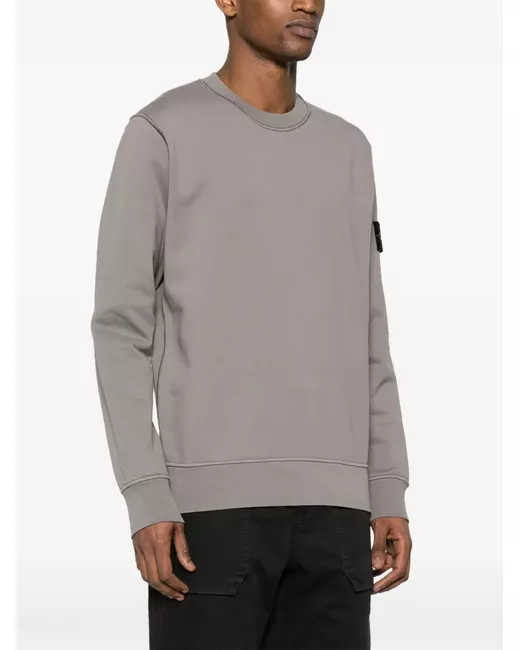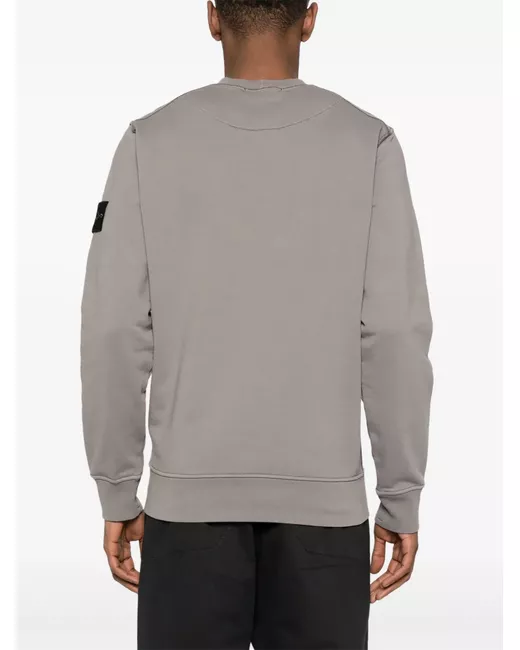 battleship grey cotton jersey texture ribbed trim crew neck long sleeves signature detachable Compass badge ribbed hem