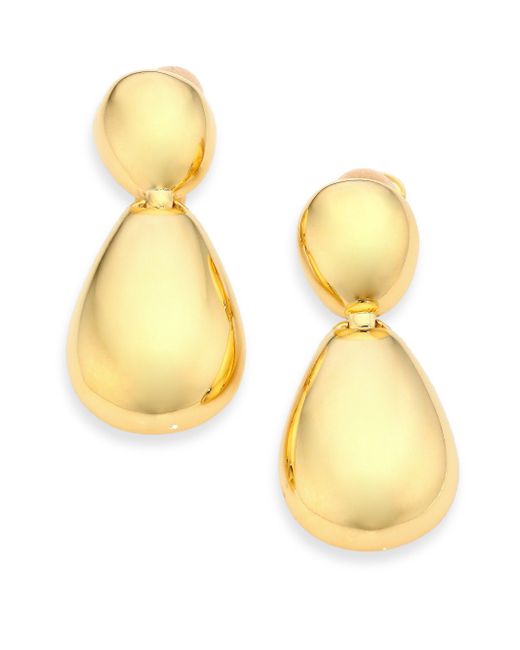 Chic two-tier design with gleaming finish Goldtone Length, 2.5" Width, 1" Clip-on back Made in USA. Fashion Jewelry - Trend Jewelry > Kenneth Jay Lane > Saks Fifth Avenue > Barneys. Kenneth Jay Lane. Color: Polished Gold.