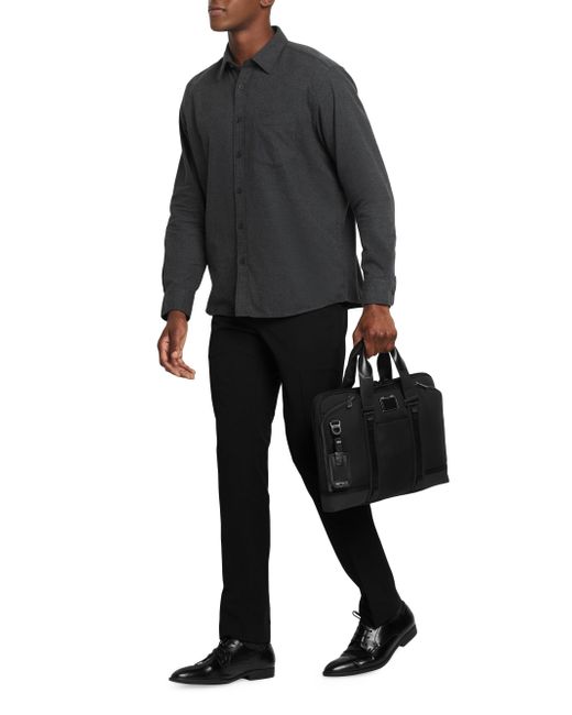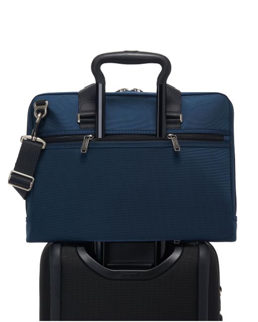 From the Alpha Bravo collection. Discover all the classics of a great brief in a compact silhouette. Slim and well organized, this brief offers dedicated laptop and tablet compartments, numerous interior and exterior pockets, and a removable shoulder strap. Top carry handles with leather accent Detachable padded shoulder strap Front daisy chains compatible with tumi+ accessories Zip entry to main compartment Two front l-zip pockets Front quick-access pocket with hidden magnetic snap Back zip pocket Add-a-bag sleeve Luggage tag Two card pockets Media pocket Zip pocket Open pocket Padded tablet pocket Padded laptop pocket Key leash Tumi tracer Pen holders 95% ballistic nylon/ 3% leather/ 2% polyurethane Spot clean Imported SIZE 15.5"W x 11.75"H x 2"D. Men Accessories - Tumi Imports > Tumi > Saks Fifth Avenue > Barneys. TUMI. Color: Navy.