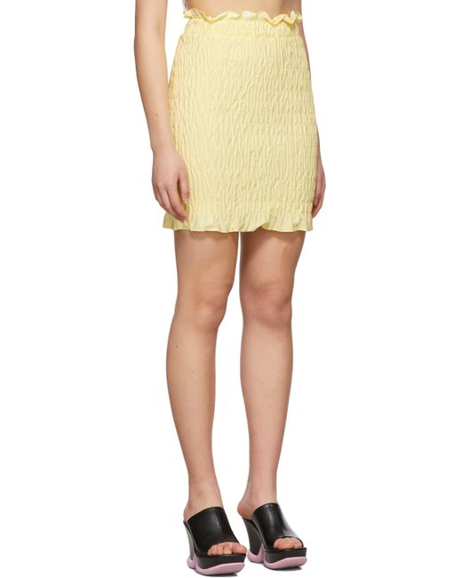 Cotton poplin short skirt in yellow. Ruching throughout. · High-rise · Elasticized waistband · Full jersey lining Supplier color: Mimosa