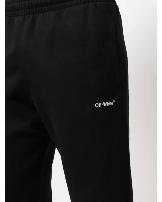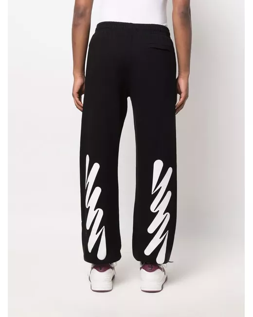 Black organic cotton/recycled cotton Wave Diagonal track pants from OFF-WHITE featuring jersey knit, diagonal stripe pattern, elasticated waistband, two side slash pockets and elasticated cuffs.