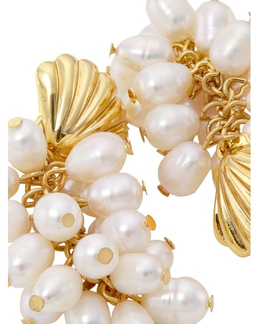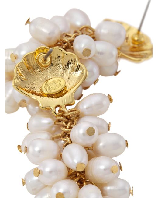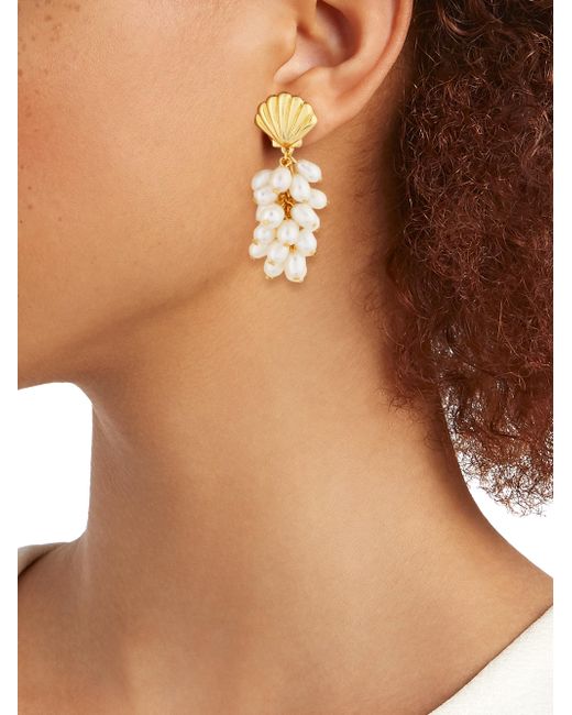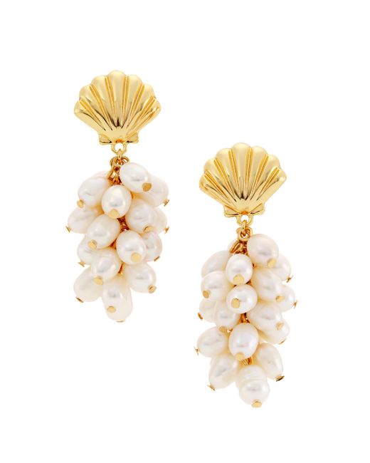 Kenneth Jay Lane's statement-making gold-plated drop earrings feature freshwater pearl clusters dangling from seashell posts. Freshwater pearls, white Gold-plated steel Brass Zinc Post backs Imported SIZE Drop, about 2.5". Fashion Jewelry - Trend Jewelry > Kenneth Jay Lane > Saks Fifth Avenue > Barneys. Kenneth Jay Lane. Color: Gold.