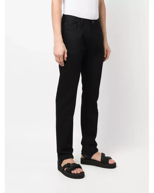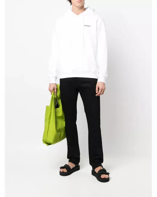Black cotton Single Arrow slim-fit jeans from OFF-WHITE featuring signature Arrows motif, front button fastening, belt loops, classic five pockets and slim cut.