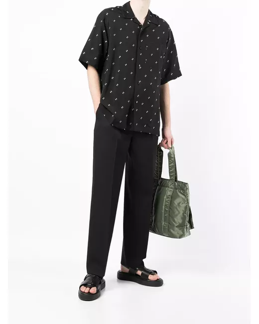 black triangle logo spread collar front button fastening short sleeves chest patch pocket