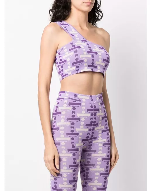 purple knitted construction abstract pattern print one-shoulder sleeveless cropped