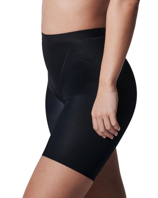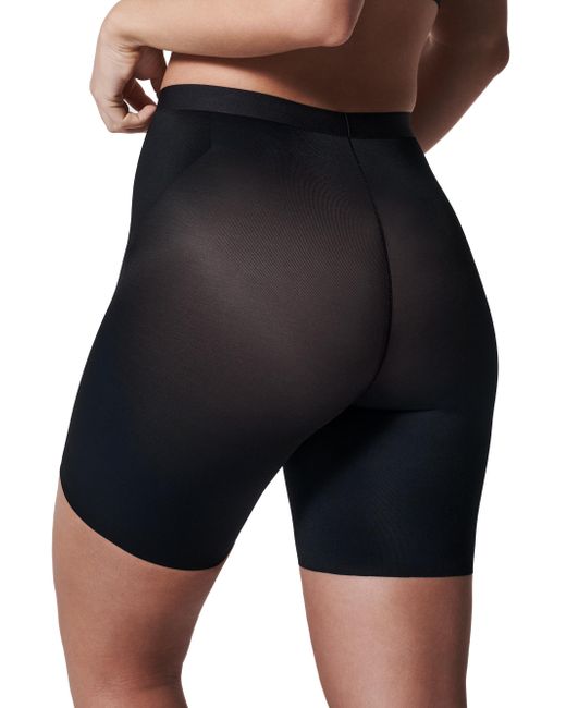 Made of lightweight and breathable Thinstincts fabric, these Spanx single-layer anti-chaffing shorts offer targeted shaping throughout the torso and hips. A flat waistband and seamless leg openings ensure a no-show look. Elasticized waistband Pull-on style Machine wash Imported SIZE & FIT Model measurements: 5'10" tall Model is wearing a US size Small. Lingerie - Spanx > Spanx > Saks Fifth Avenue > Barneys. Spanx. Color: Very Black. Size: Small.